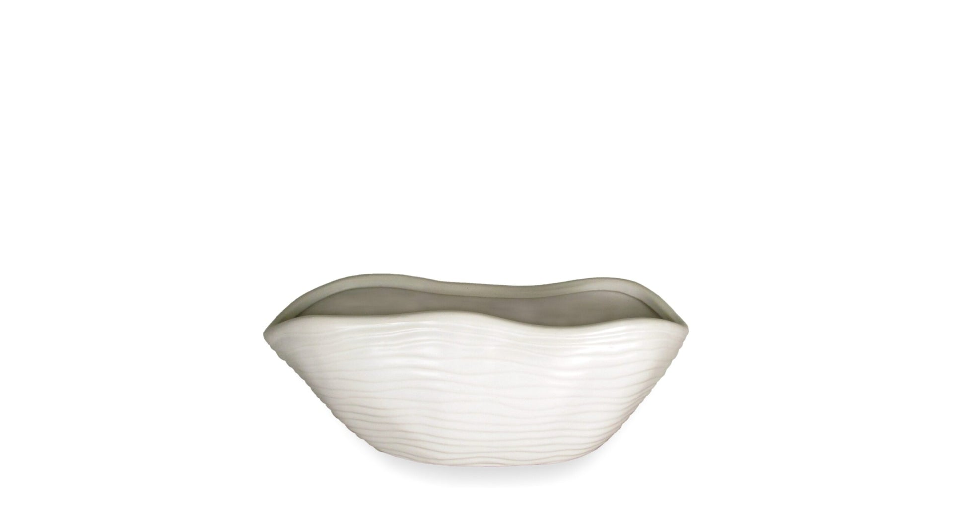 Description: MATTE WHITE 9" LONG WAVY OVAL POT Size: "Inches" 9.25" X 3.5" X 3.75" Inside Measurements: Length X Width X Depth Quantity Per Package: 12 Per Case Unit: EACHShare