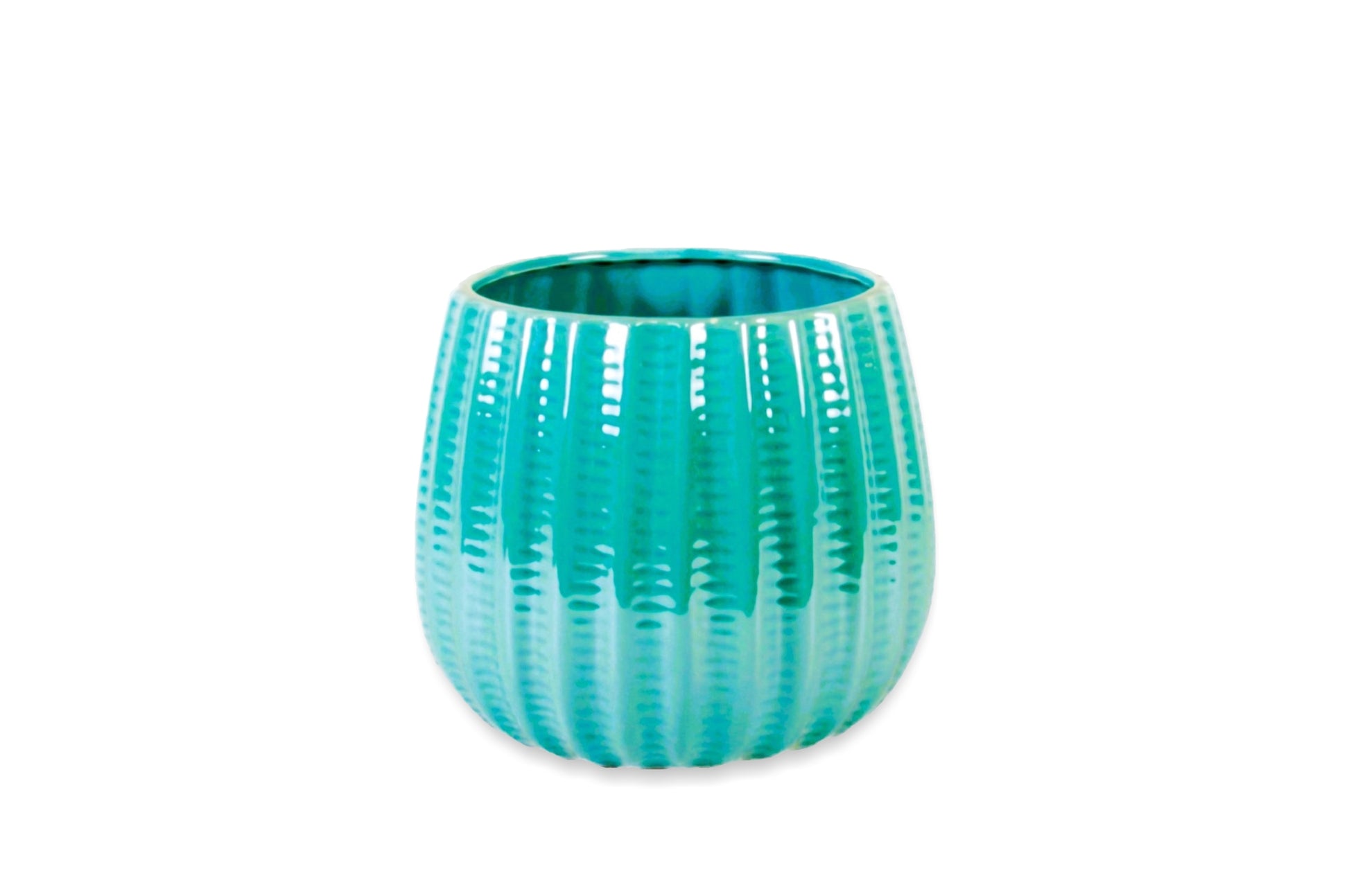 Description: Ceramic 5″ pot with vertical design.