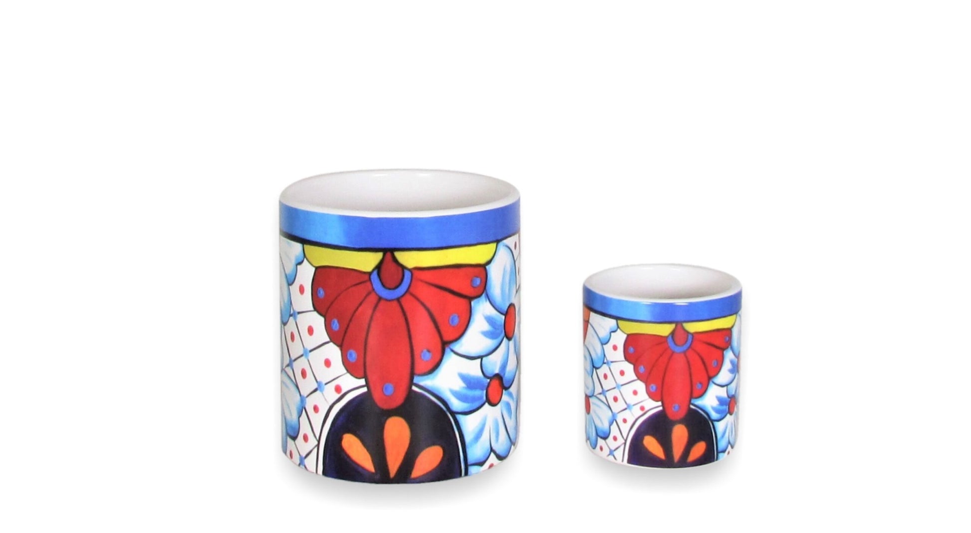 Description: Ceramic 2" & 4" talavera pattern pots.