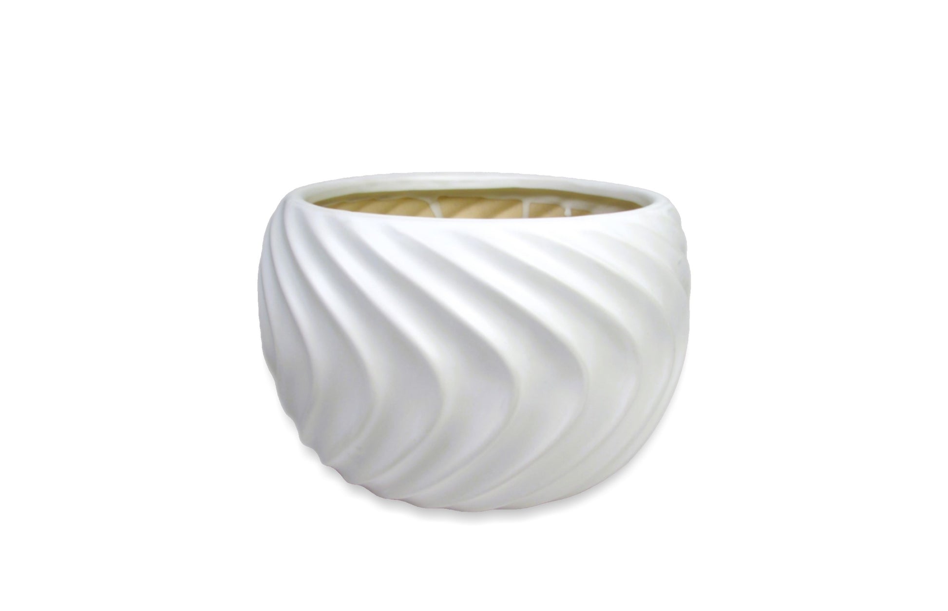Description: CERAMIC 6" MATTE WHITE POT WITH WAVE GROVES