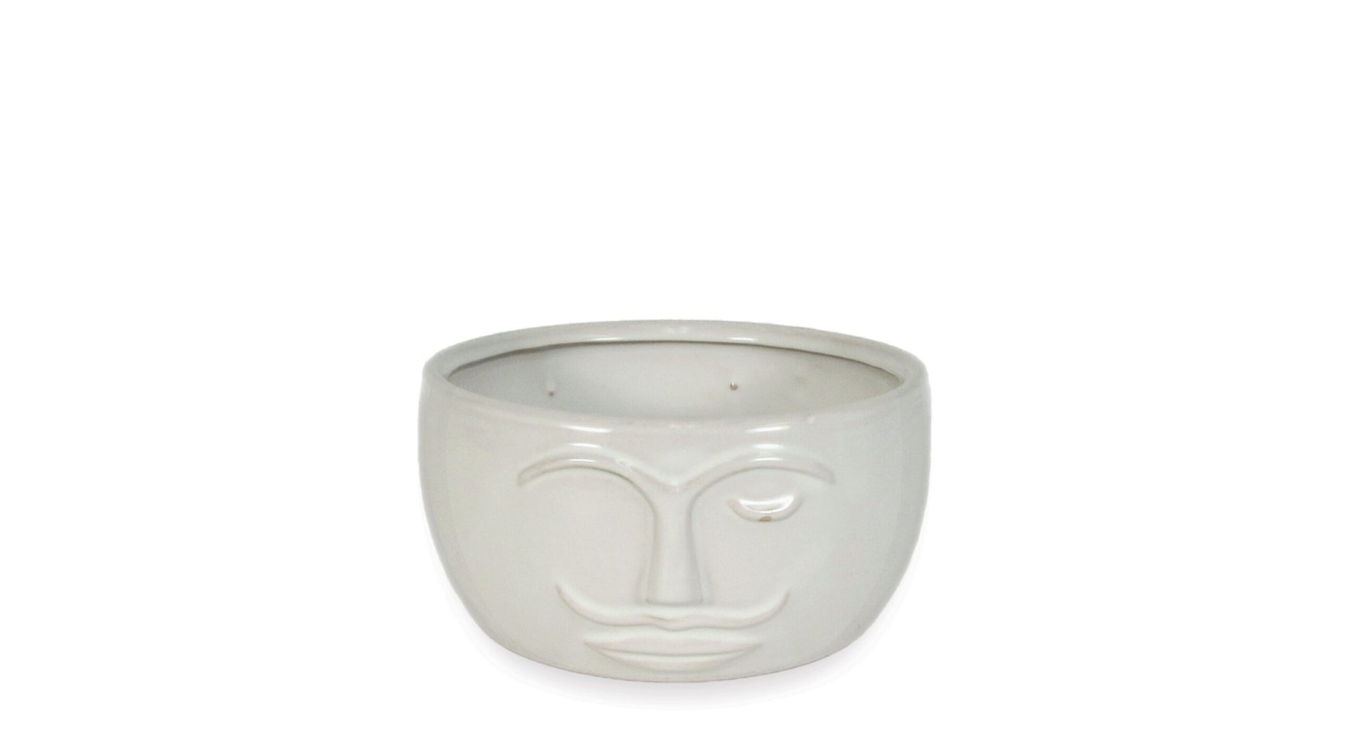 Description: Ceramic 6" round white tray with face. Size: "Inches" 5.5 X 5.5 X 3 Inside Measurements: Length X Width X Depth Quantity Per Package: 18 Per Case Unit: EACHShare