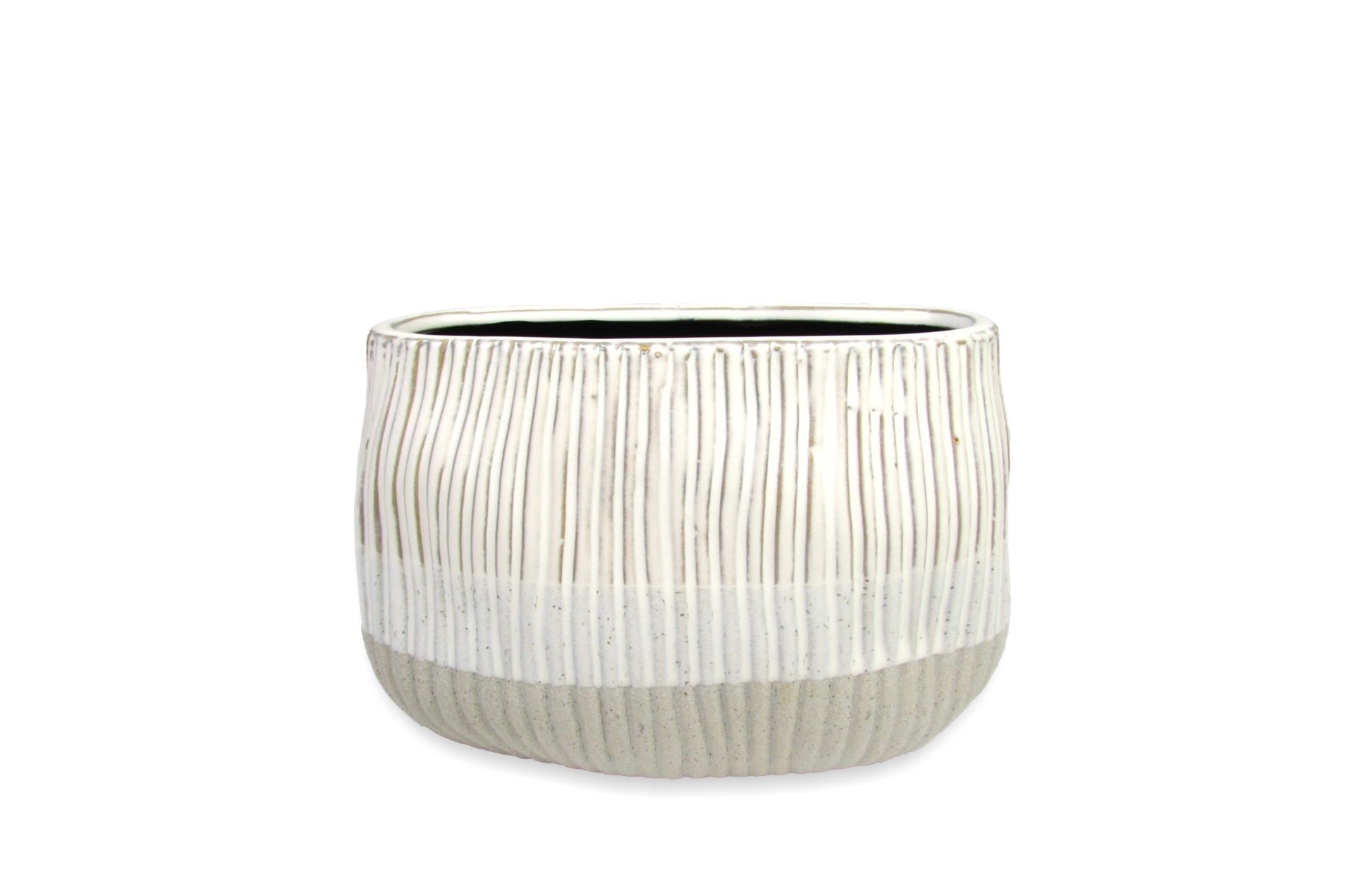 Description: OVAL TWO TONED SAND 7" CERAMIC WITH VERTICAL LINES