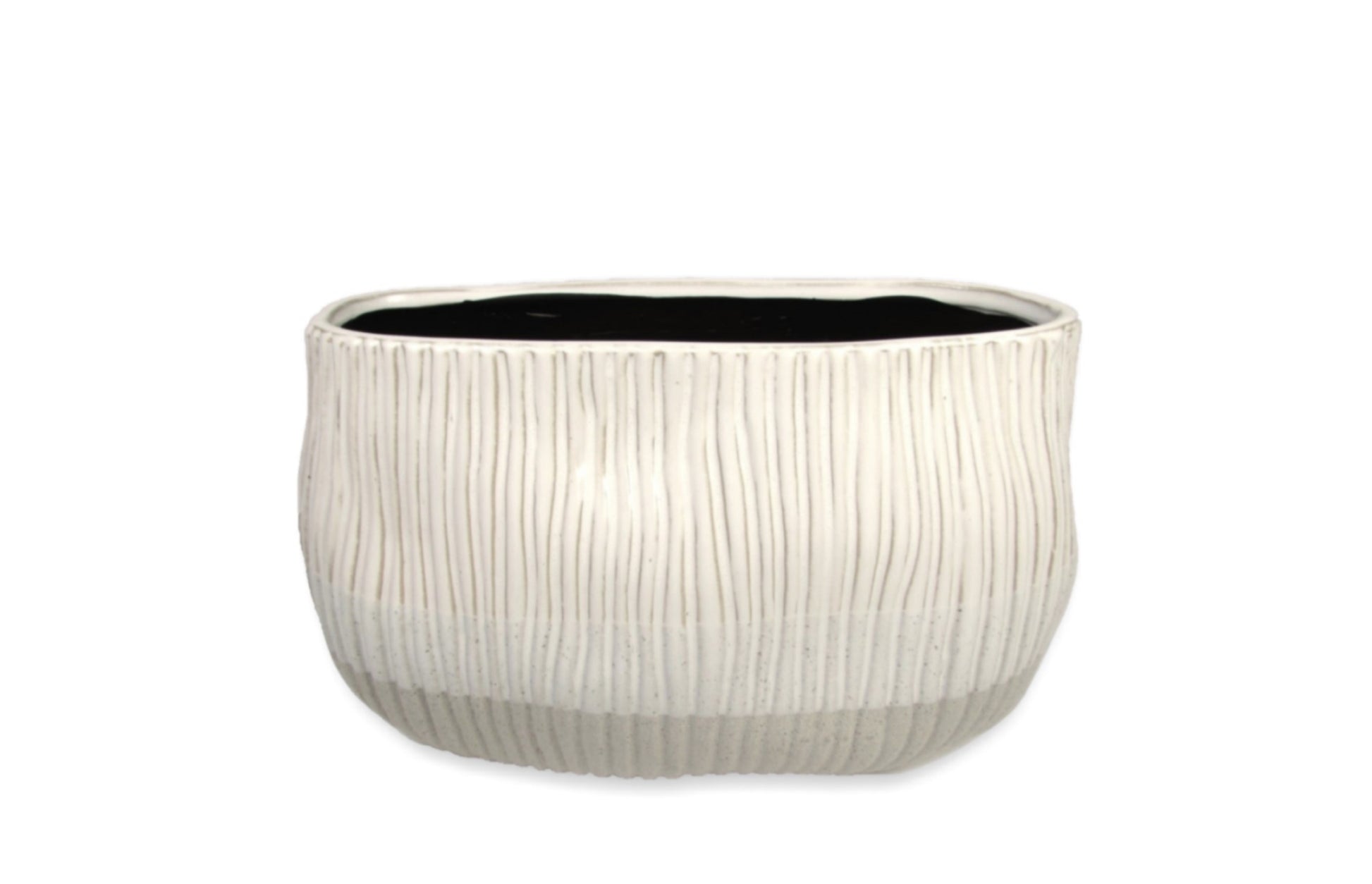 Description: OVAL TWO TONED SAND 10″ CERAMIC WITH VERTICAL LINES