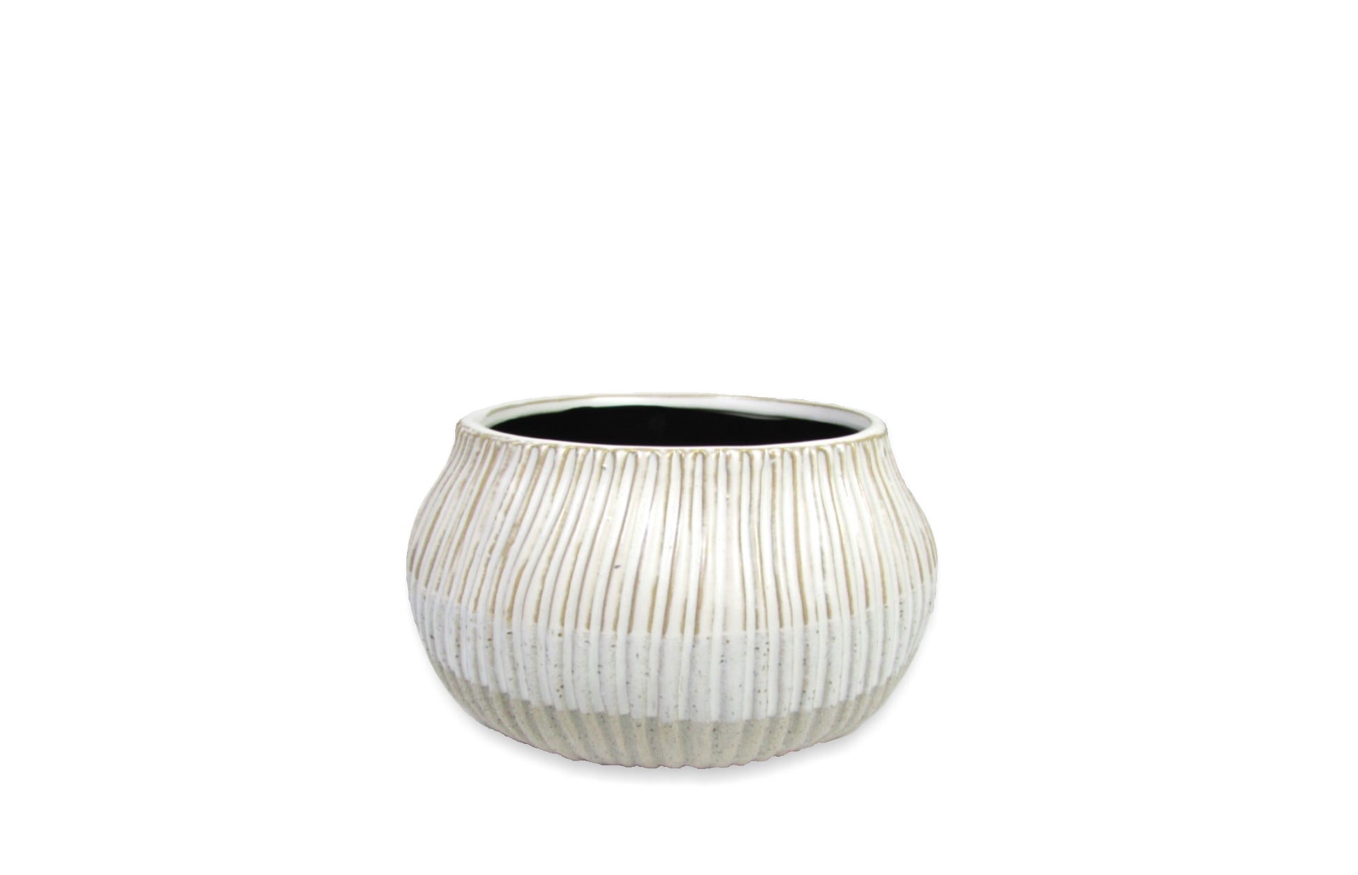 Description: SHORT TWO TONE SAND 5" ROUND CERAMIC WITH VERTICAL LINES