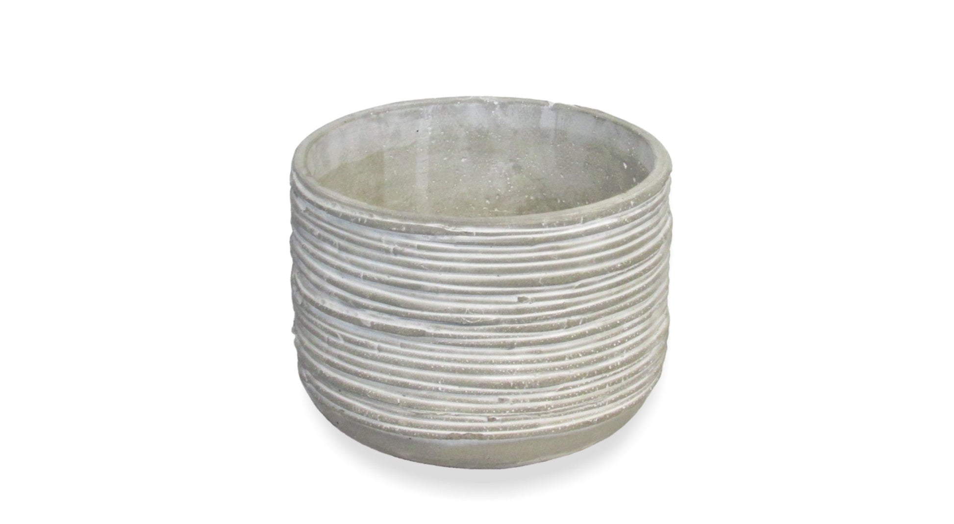 Description: Natural cement 6" pot with line indents Size: "Inches" 6.63 X 6.63 X 5 Inside Measurements: Length X Width X Depth Quantity Per Package: 8 Per Case Unit: EACHShare
