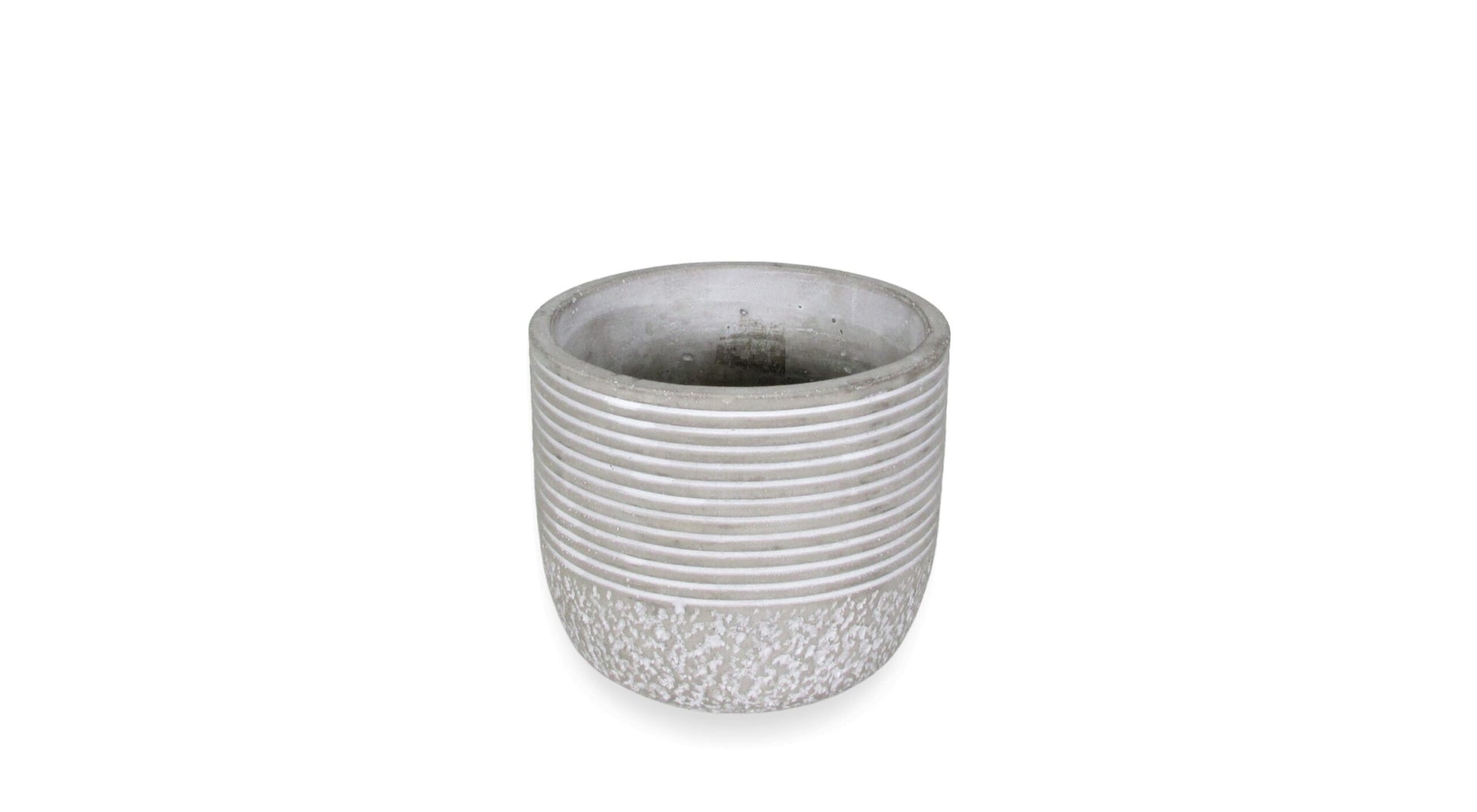 Description: Natural grey and white 4" pot with line design; No liner needed Size: "Inches" 4.25 X 4.25 X 4 Inside Measurements: Length X Width X Depth Quantity Per Package: 16 Per Case Unit: EACHShare