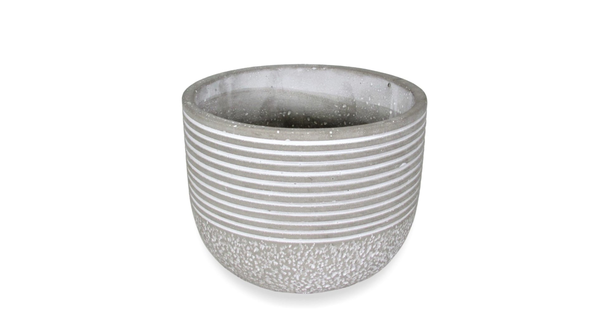 Description: Natural grey and white 6" pot with line design; No liner needed