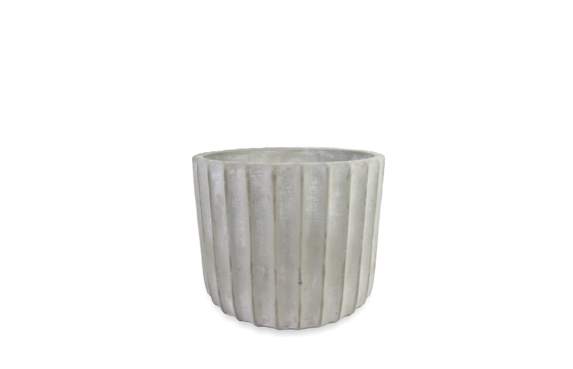 ***SOLD BY CASE ONLY*** ***CANNOT SHIP VIA FEDEX & UPS*** Description: NATURAL CEMENT 6″ POT WITH VERTICAL GROVES Size: “Inches” 6.75" X 6.75" X 5" Inside Measurements: Length X Width X Depth Quantity Per Package: 8 Per Case Unit: EACH