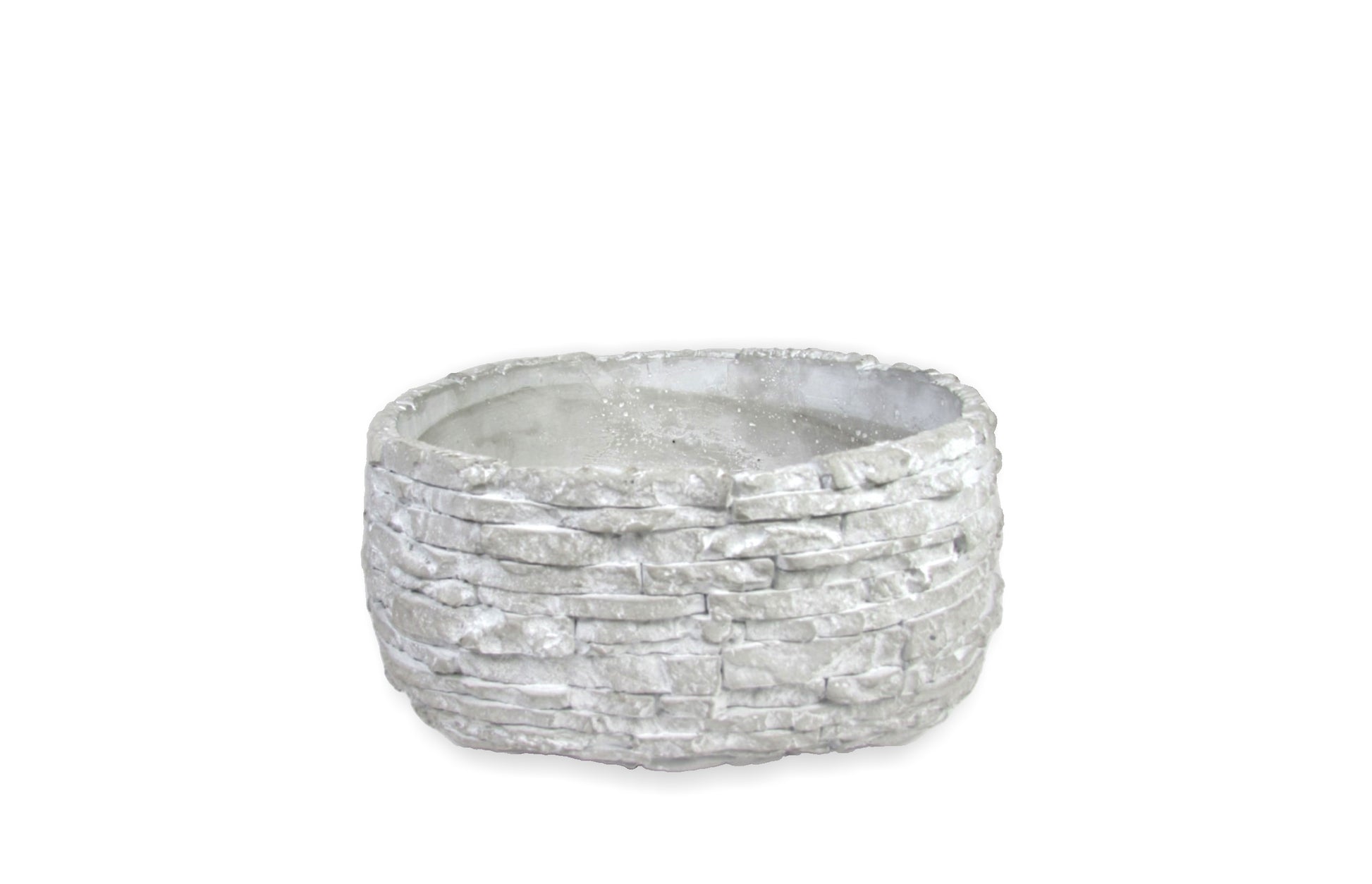 Description: ROUND CEMENT BOWL WITH ROCK DESIGN.