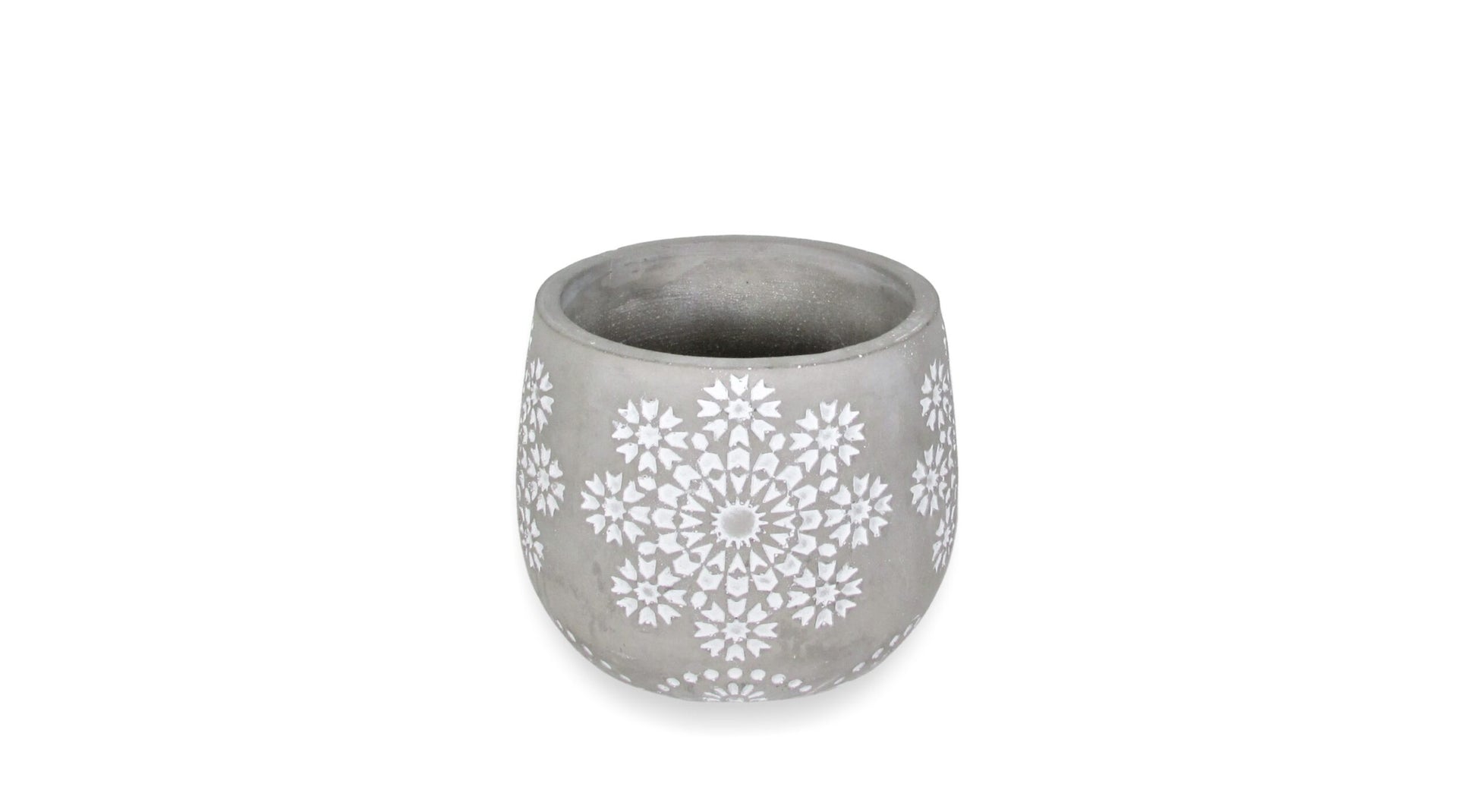 Description: Natural grey and white 4" pot with snow flake design; No liner needed