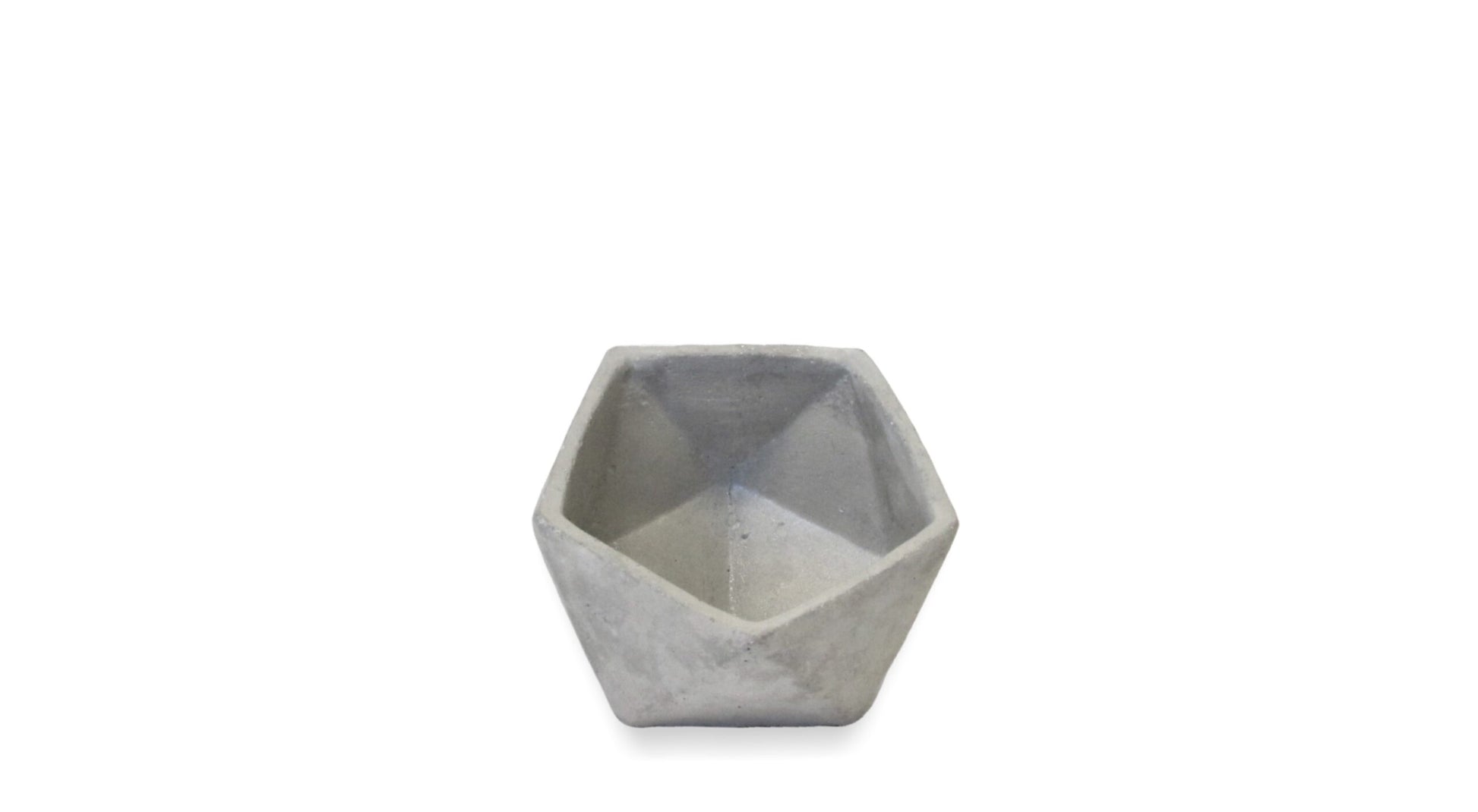 Description: Natural grey cement geometric pot, sits slanted on side- MED; No liner needed