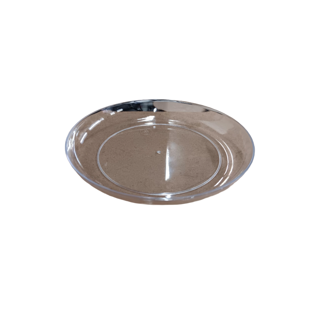 Description: 11" clear plastic design dish