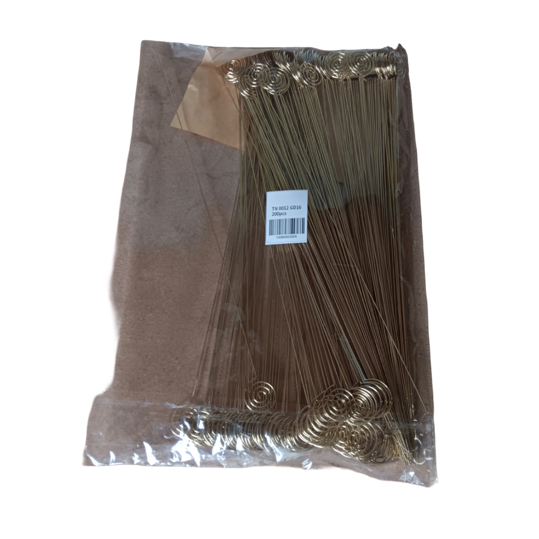 Description: 16" gold metal swirl card holder