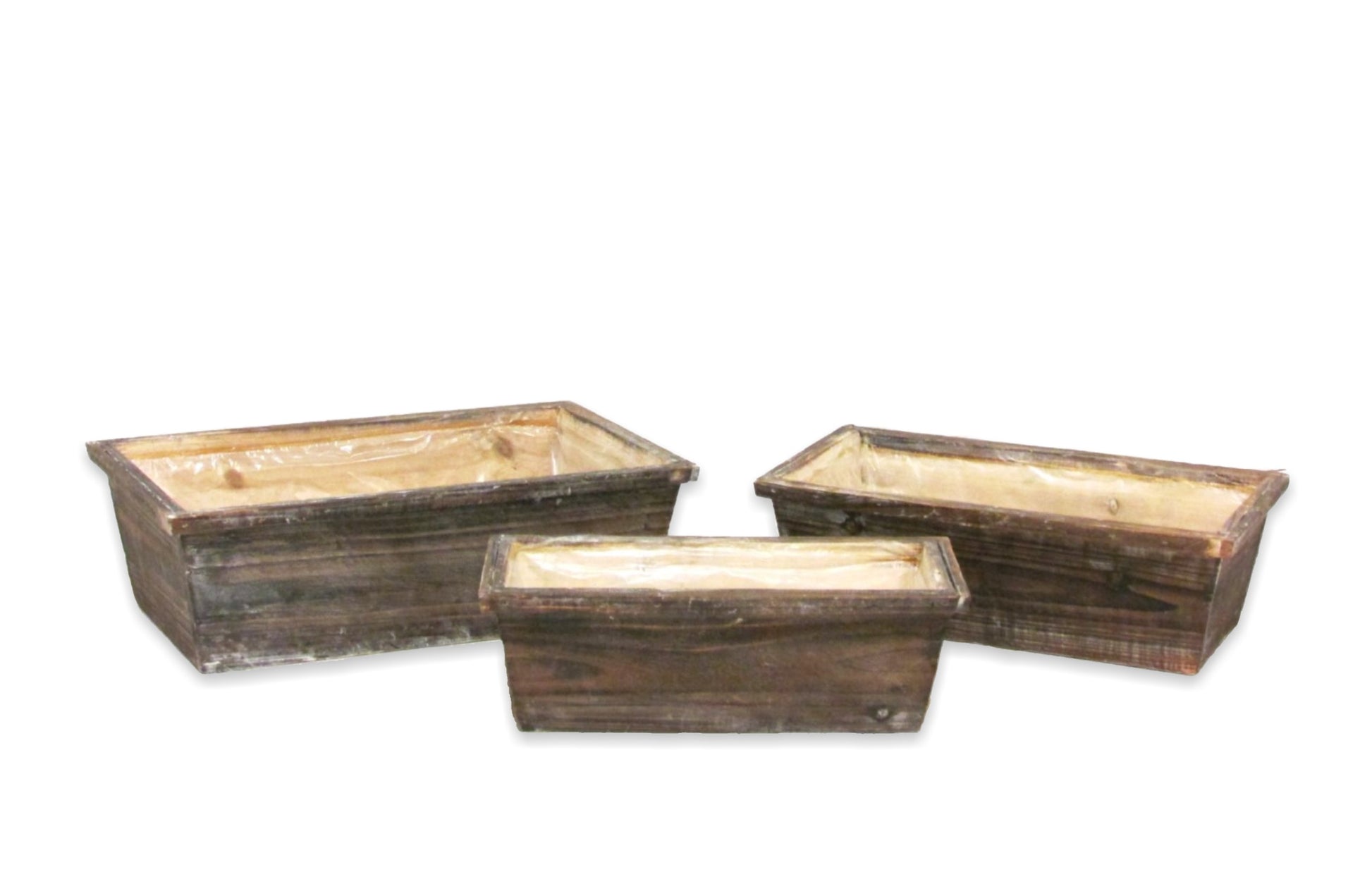 Description: Distressed natural/whitewash wood rectangle containers.