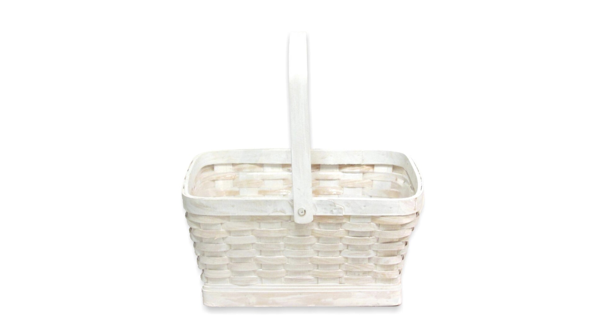 Description: Whitewash plywood 11" basket with moving handle; comes with hard liner.