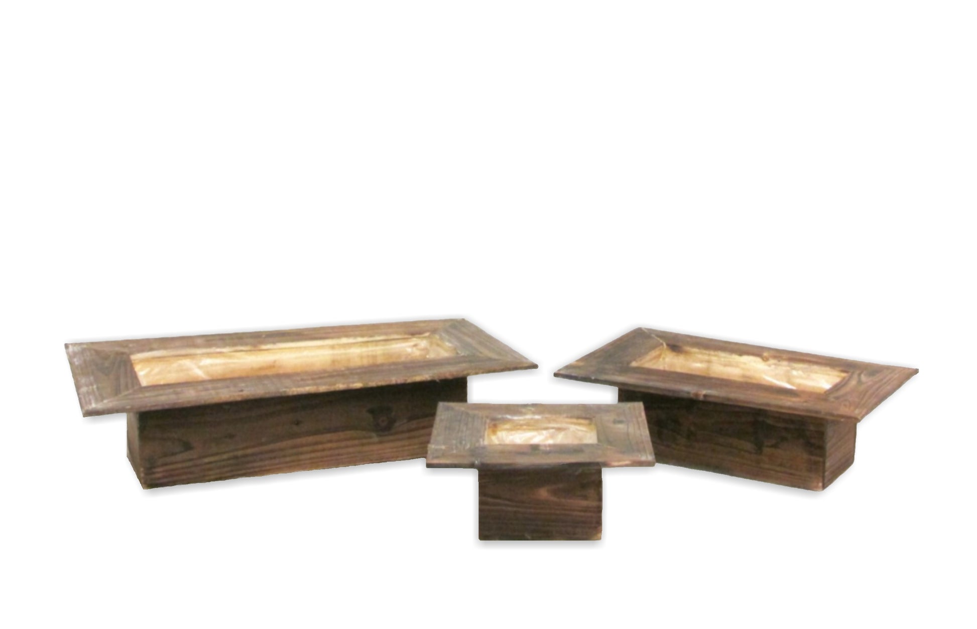 ***Soft liner only*** Description: Distressed brown/whitewash wood rectangular planters. Size: "Inches" LG- 18 X 6 X 6.5 MED- 11.5 X 5 X 5 SM- 5.5 X 4 X 4.5 Inside Measurements: Length X Width X Depth Quantity Per Package: 3 Per Case Unit: Set of 3