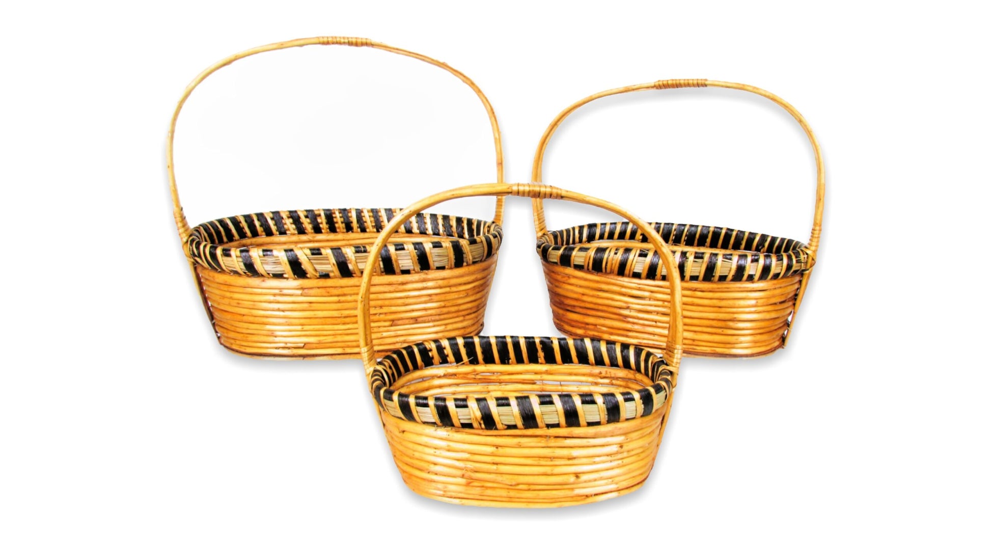 Description: Honey woody willow oval baskets with wrapped rim.