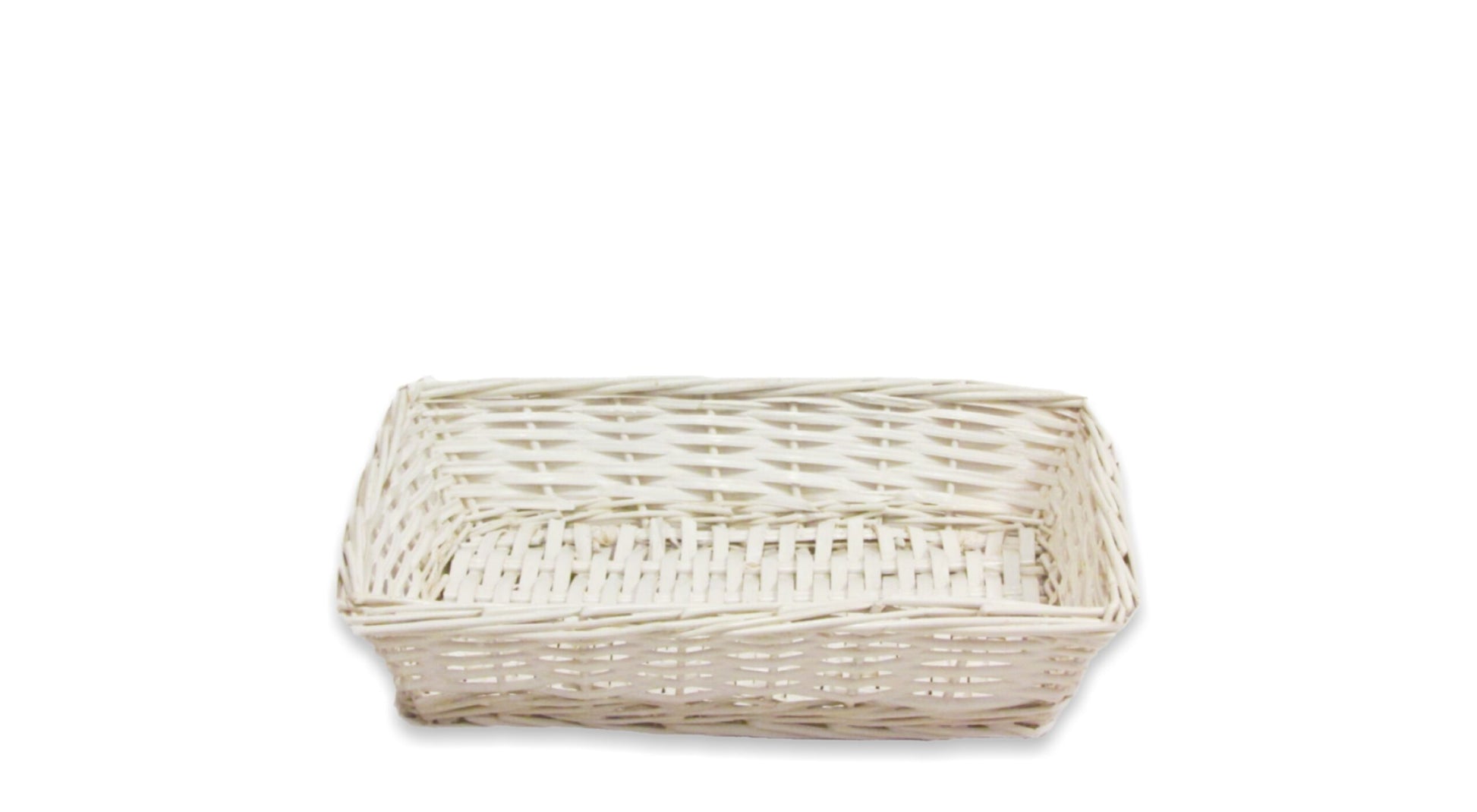 ***No liners available*** Description: White split willow small rectangle tray.