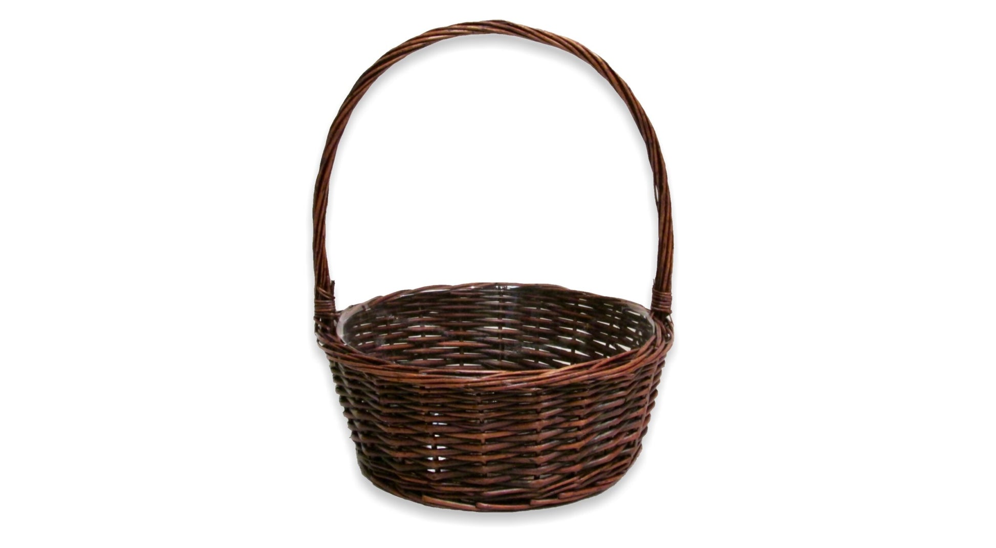 Description: Stained willow round 10″ basket; Comes with hard liner.