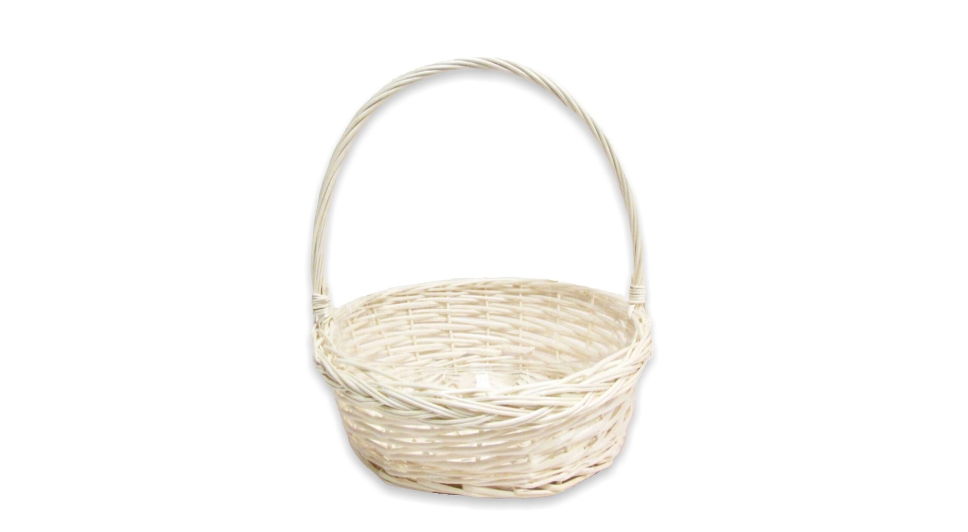 Description: Natural willow round 12″ basket with braided rim; Comes with hard liner.