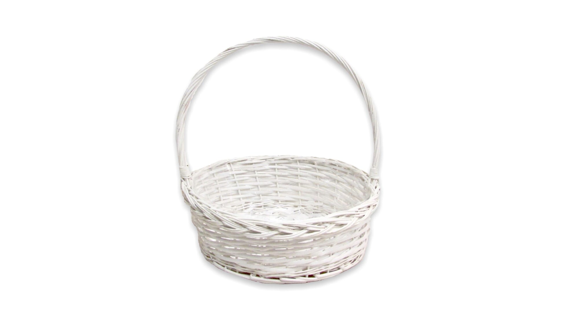 Description: White willow round 12″ basket with braided rim; Comes with hard liner.