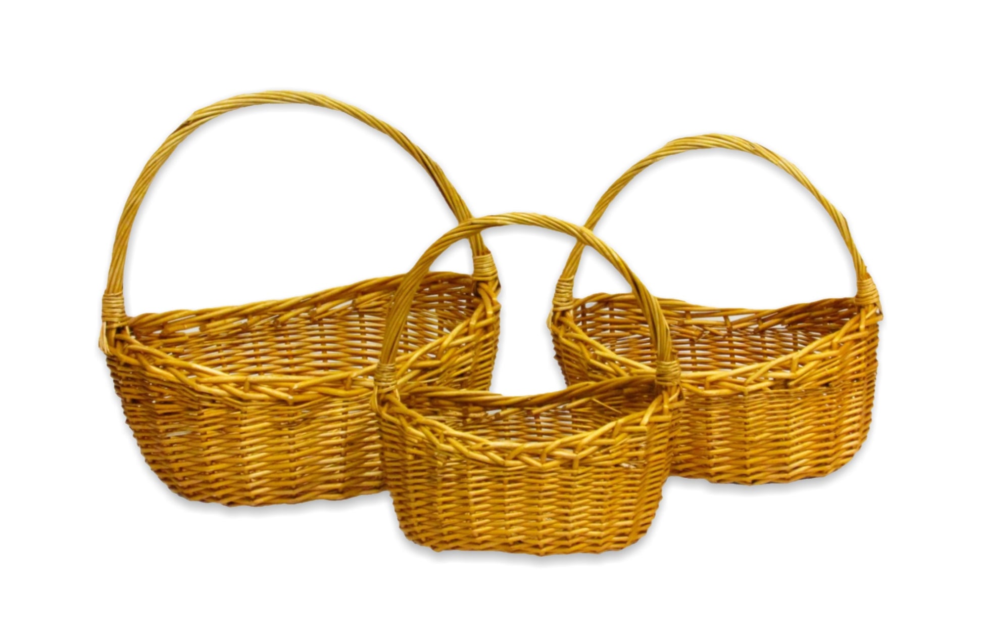 Description: Honey willow boat baskets with braided rim.