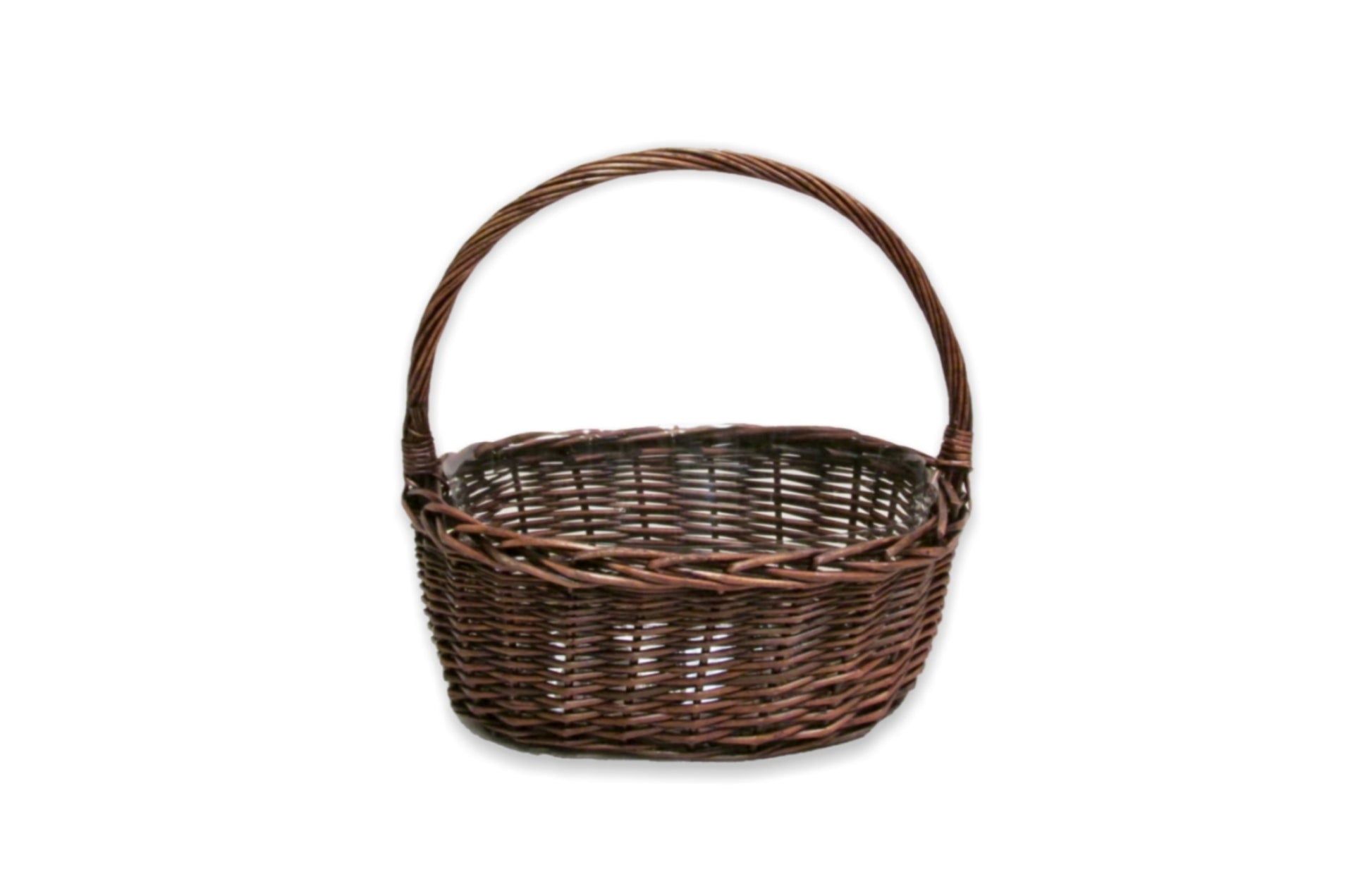 Description: Stained willow oval basket with braided rim; Comes with hard liner.
