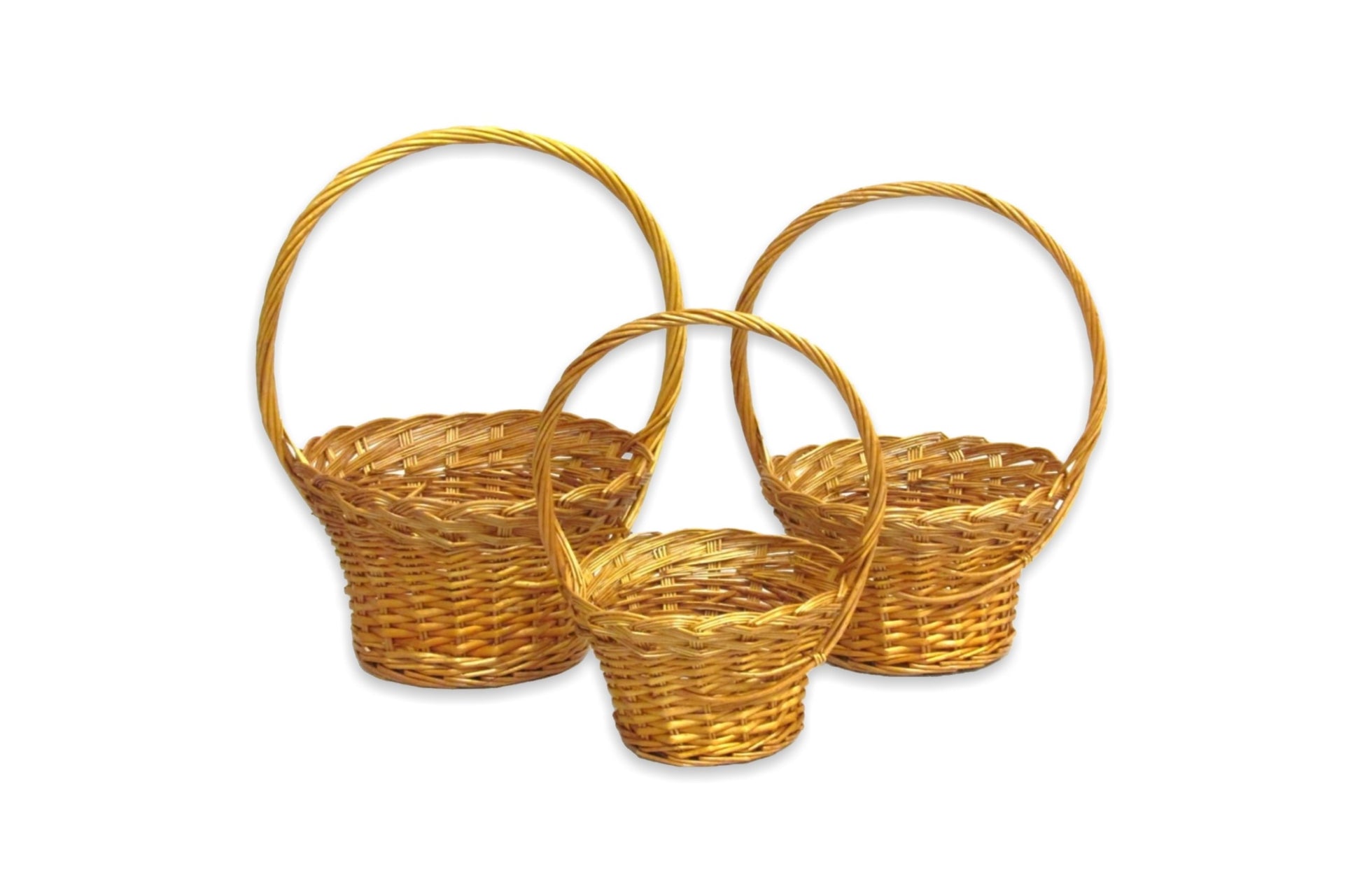 Description: Honey willow round flower girl baskets with braided flat rim and side design.