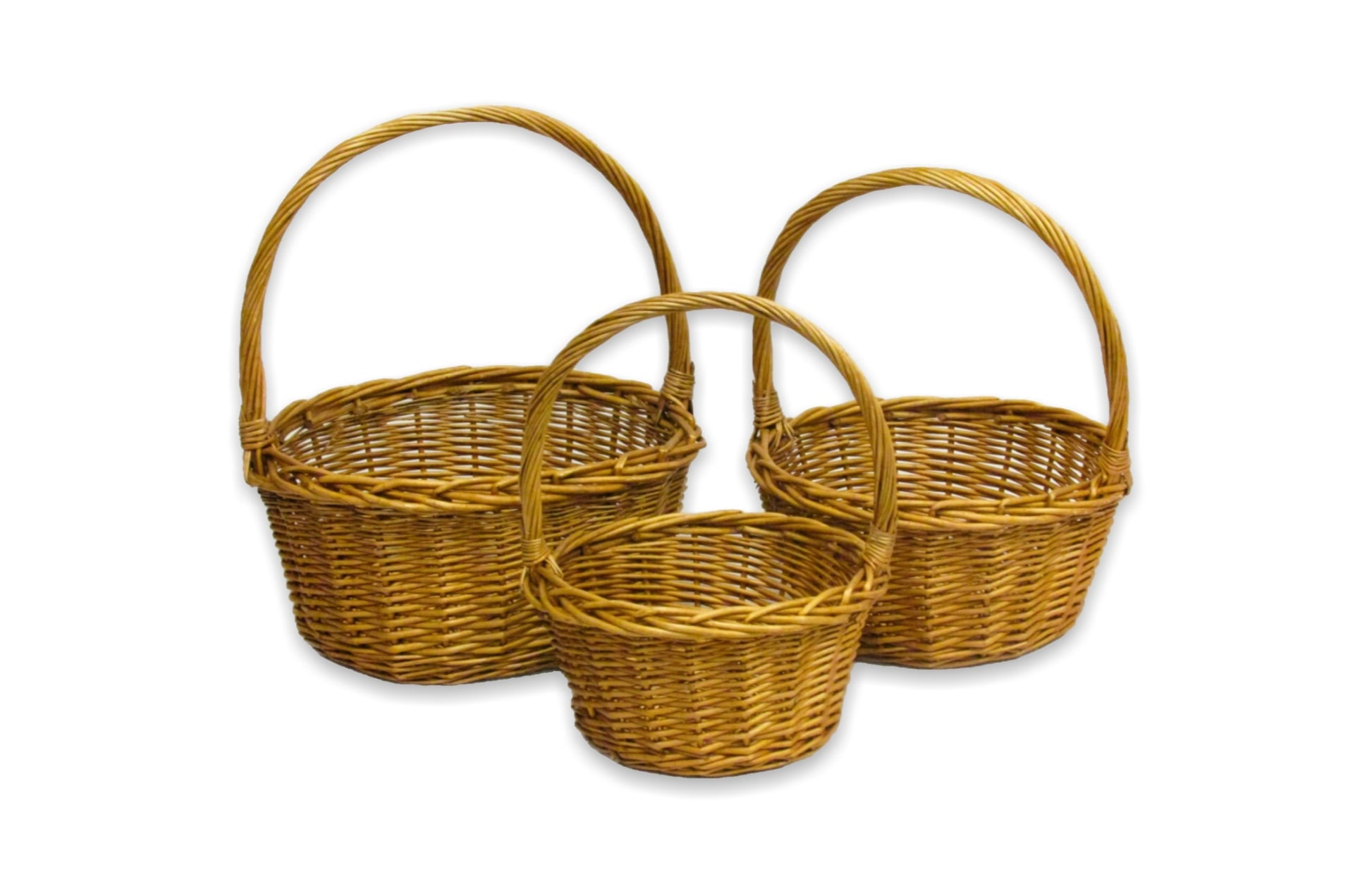Description: Honey willow round basket with braided rim