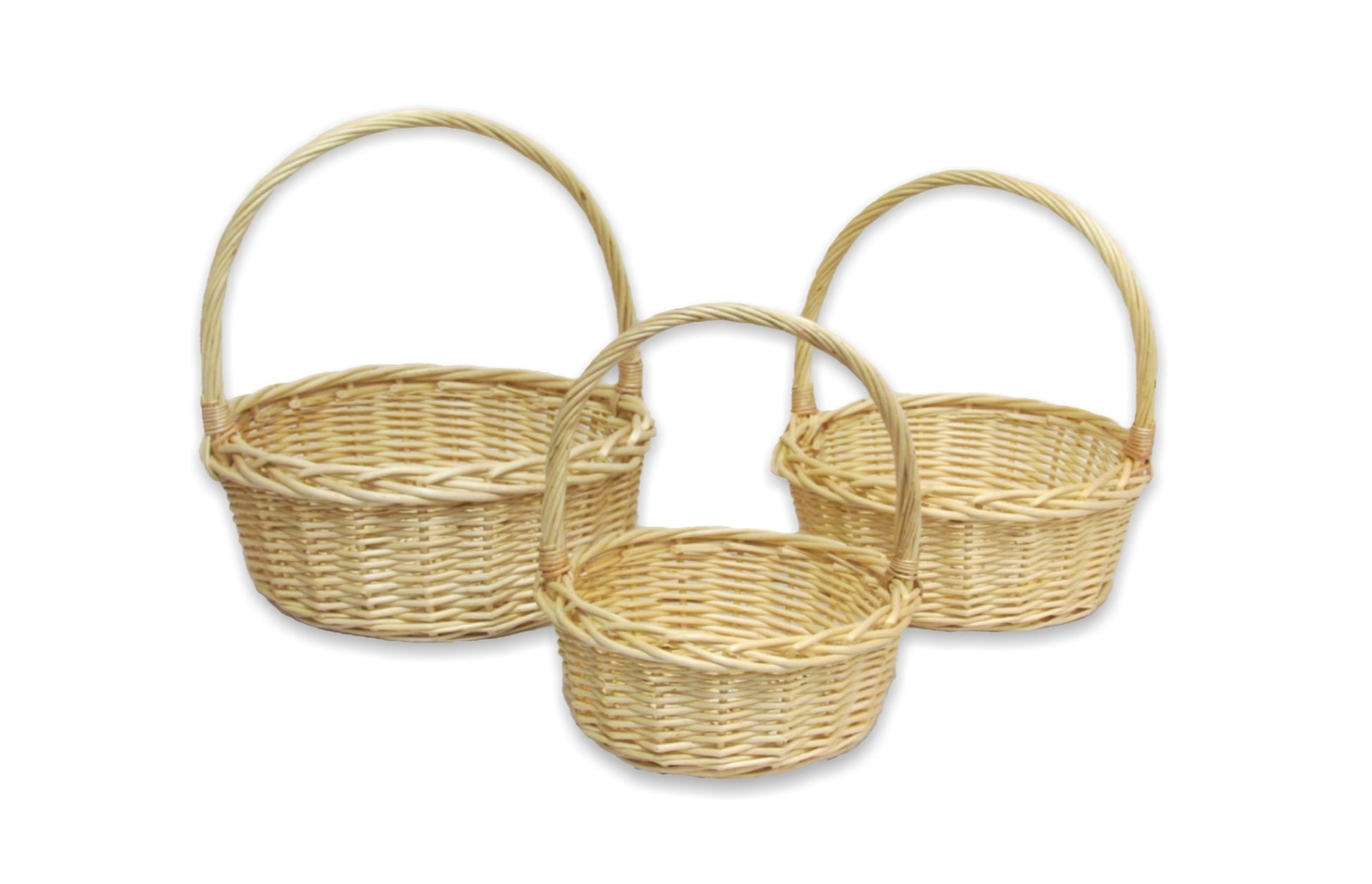Description: Natural willow round basket with braided rim